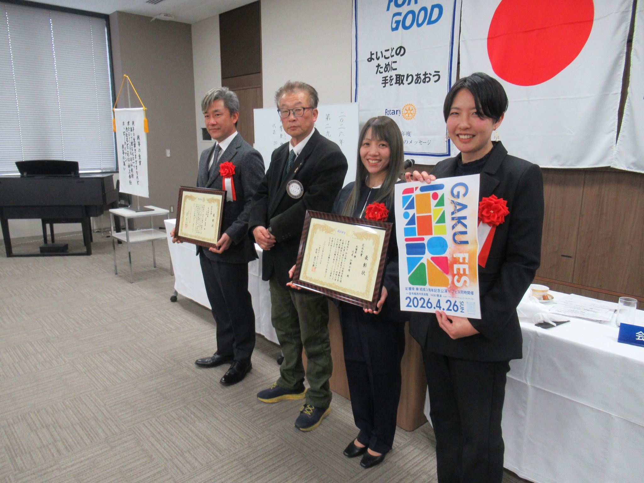 1953年3月15日に設立された一宮北RCは、西尾張地域で四番目の歴史を誇るクラブでありながら、硬直した活動に流されず、多様な活動によってロータリーの公共イメージ向上に貢献していることを高く評価していただきました。