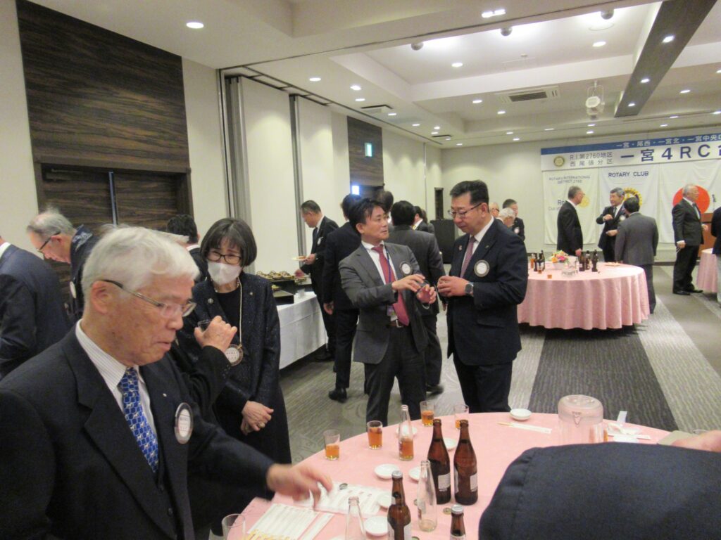 1/8、真清田神社参集殿にて一宮4RC合同新春例会が行われました。初めに中野市長のスピーチを拝聴し、その後の立食パーティーで地元一宮市のロータリアン同士が親睦を深めました。