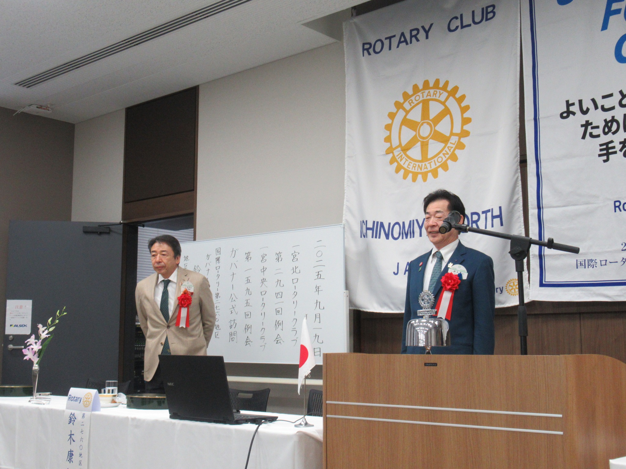9月19日の例会は一宮中央ロータリークラブとの合同例会、ガバナー公式訪問でした…
